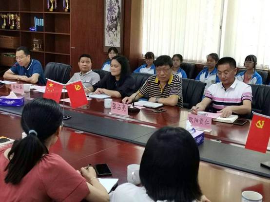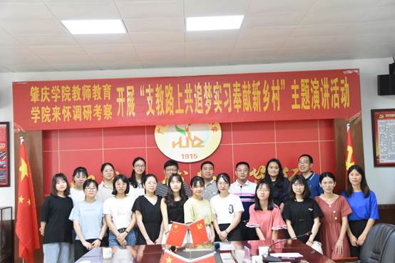 6月14日上午,肇庆学院williamhill威廉希尔官网党委书记张占亮、怀集县教育局党组成员、副局长谢祥华、肇庆学院(怀集)教师教育改革实验区党支部书记薄艳玲一行赴肇庆学院(怀集)教师教育改革创新试验区党支部开展调研考察,并参加支教实习生党员在怀集一中开展的“支教路上共追梦,实习奉献新乡村”主题演讲活动。