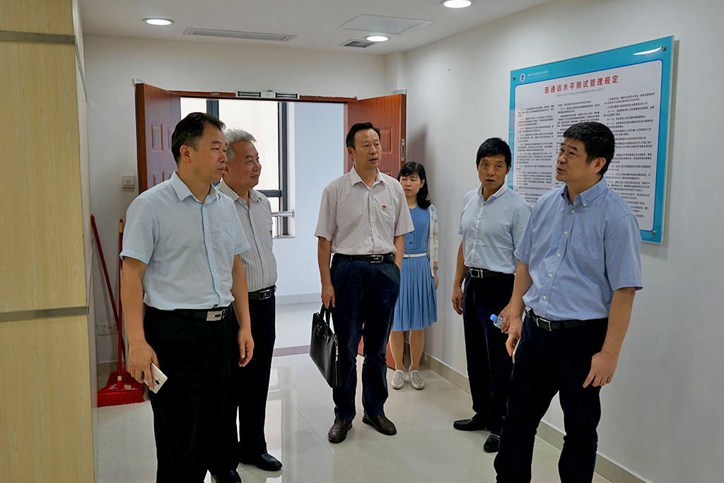 肖起清院长陪同领导们参观了板书长廊、书画训练室、普通话测试站、远程交互中心、新媒体实训室等主要功能室,详细介绍了发展中心建设与使用情况以及服务于在校师范生技能培养、在职教师培训等方面所做的成绩与经验。省厅领导对我校省级中小学教师发展中心的建设和相关工作给予高度评价与充分肯定,并对我校省级中小学教师发展中心未来的发展作出指示,提出了许多有建设性的宝贵意见。