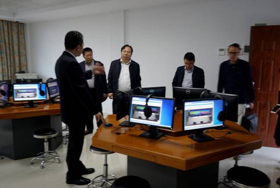 肖起清院长向客人们演示微课制作室的使用