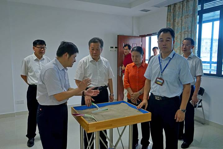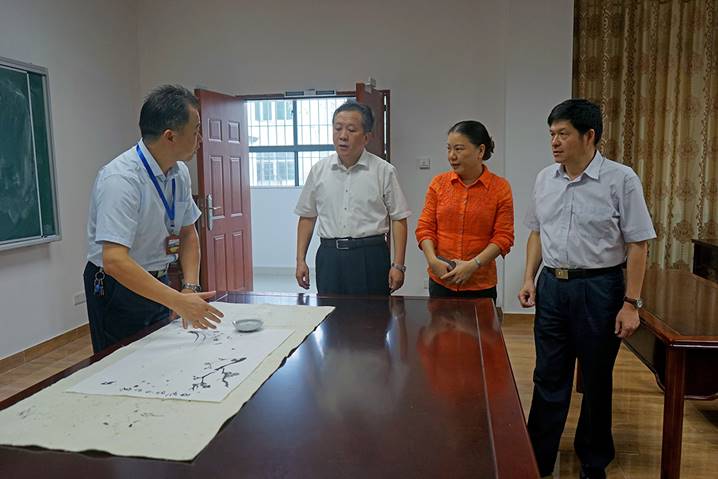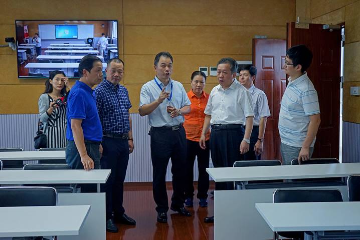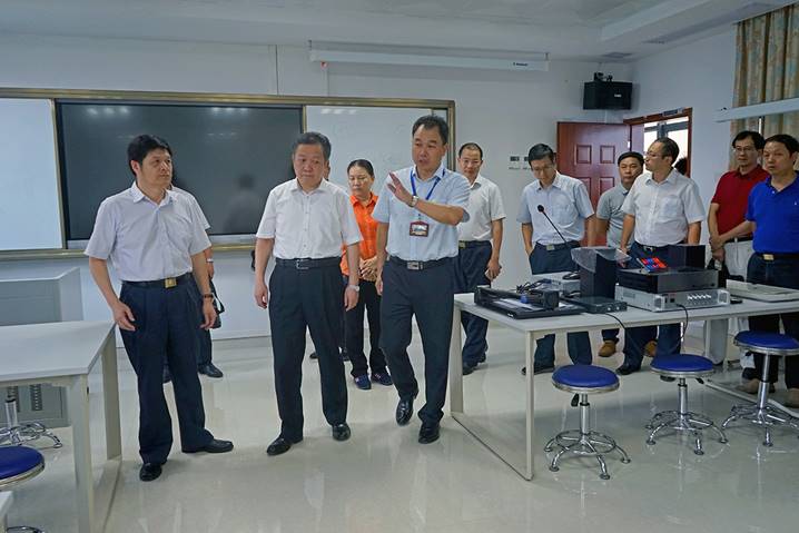 8月10日下午,广东省教育厅厅长景李虎一行莅临肇庆学院省级中小学教师发展中心指导工作。肇庆学院党委书记曾桓松、肇庆学院党委副书记叶峥嵘、肇庆市副市长陈宣群、肇庆市教育局局长彭银祥、肇庆学院两办主任朱为鸿、肇庆学院williamhill威廉希尔官网院长肖起清等陪同景李虎厅长一行参观了师德与传统文化室、书画训练室、普通话测试室、远程教学交互中心、教学反思与教学设计室、教师形象设计与训练室、微课录制室、智慧教室、教学新媒体实训室、教师信息能力训练室等多个功能室。