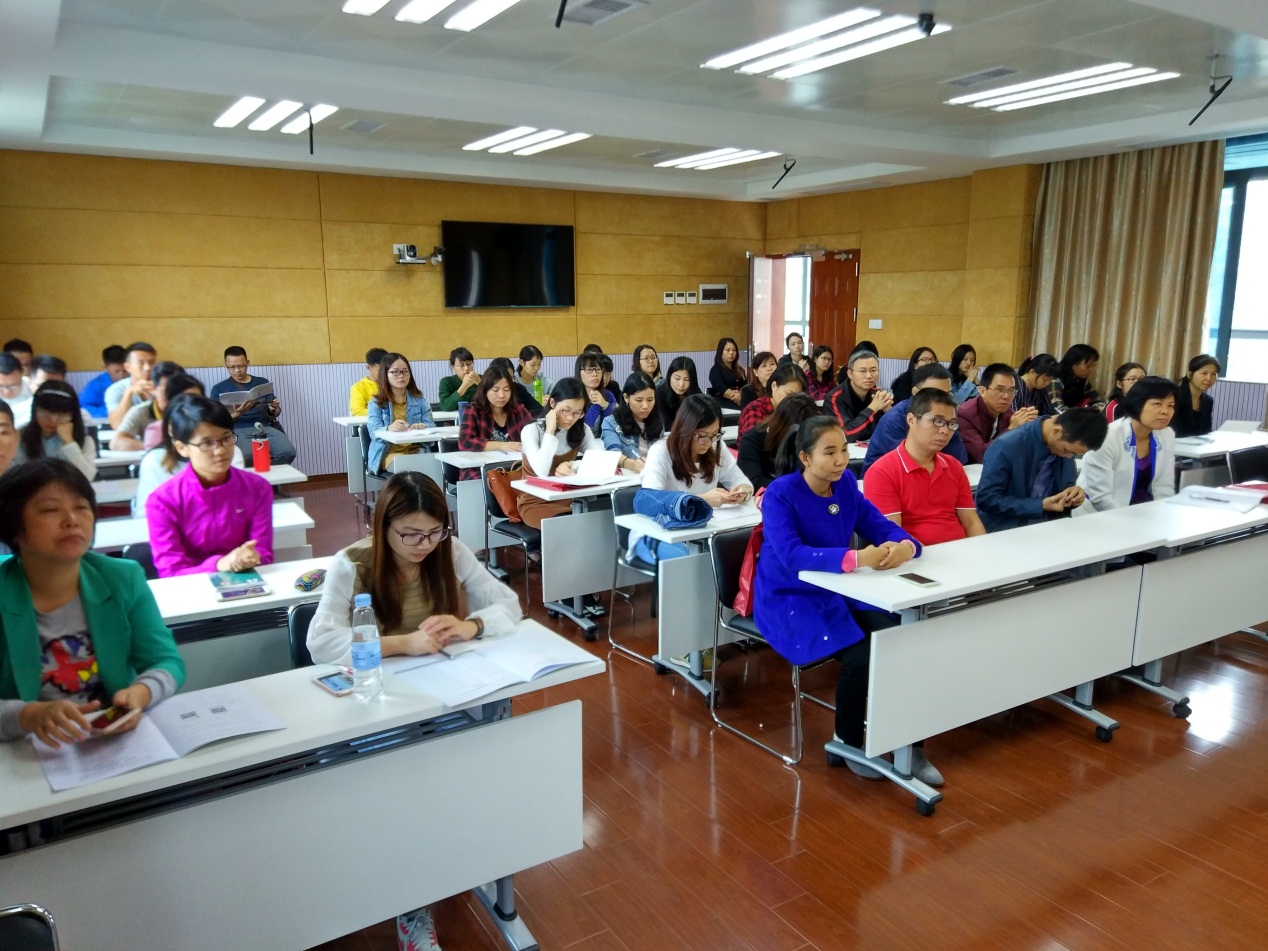 随后,肖晓玛副主任发言。肖主任表示本次培训的课程是与横栏镇教育事务指导中心反复研讨而设计的,师资都是教科研方面的专家,希望学员们在学习过程中认真聆听,积极参与互动,高效学习。