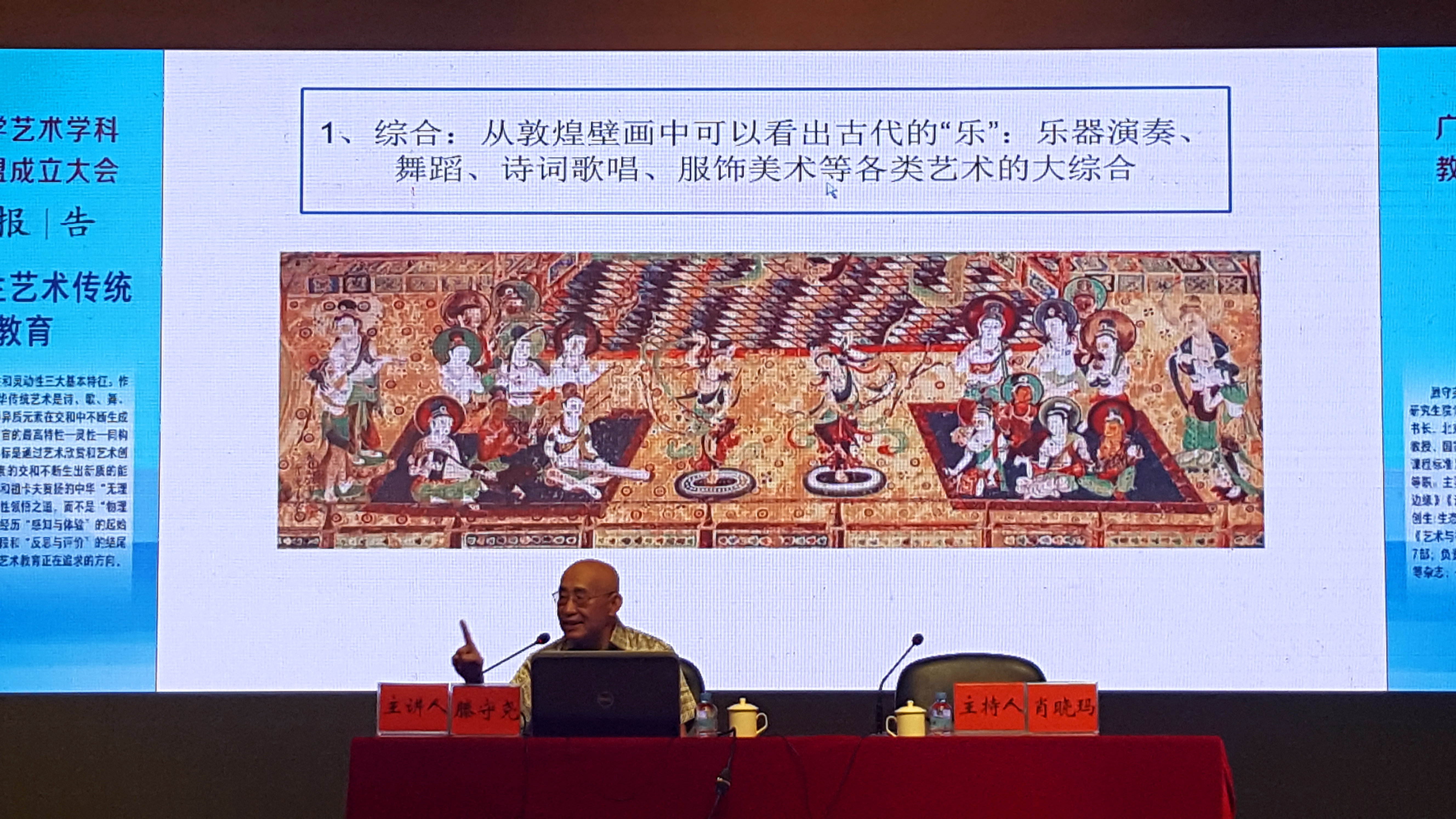 滕先生从哲学、美学、教育学等角度详细阐释了“中华创生艺术传统”所揭示的真理,即:综合、创生、灵性,并结合案例深入浅出分析了“创生性艺术教育”的基本特征:必须熟知并感悟中华创生艺术的各种形态、原理以及经典作品;以感知与体验领先,继之以创造与表现、反思与评价的整体性艺术教育;其最终目标是提高人的智慧或灵性。滕先生的讲座引起了众多听众的共鸣,为懂艺术、爱教育的有识之士指点了迷津、指明了方向。