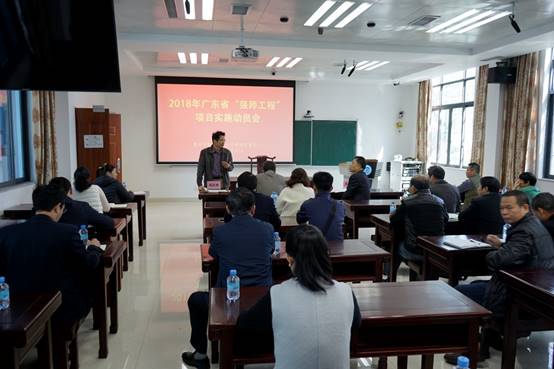 随后,肖起清院长讲话。肖院长对2017年广东省“强师工程”项目的实施情况和评估结果进行了说明,并对2018年广东省“强师工程”项目的新指示、新精神进行了传达。同时,他还从项目计划、方案落地、课程编排、专家聘请、管理服务等方面进行了重点强调。