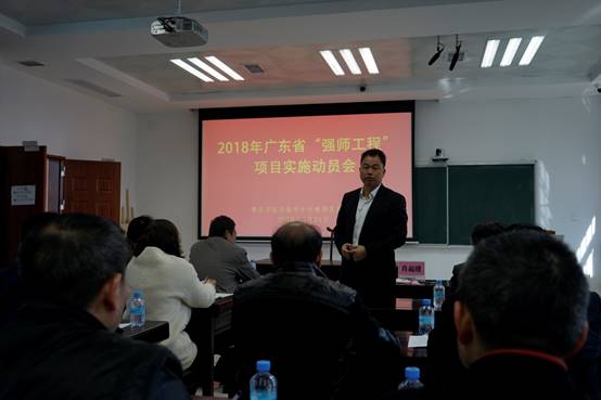 首先,周苏平校长发表动员讲话。周校长对过去一年来我校省级中小学教师发展中心和各二级学院在落实广东省“强师工程”项目方面所取得的成绩表示极大的肯定,并希望在新的一年,我校各有关单位能继续努力、齐心合作,把2018年广东省“强师工程”项目做得更扎实、更出彩,并在此基础上创造出更好的社会效益,充分发挥高校服务社会的职能,切实提高我校在教师教育工作方面的作用力和影响力。