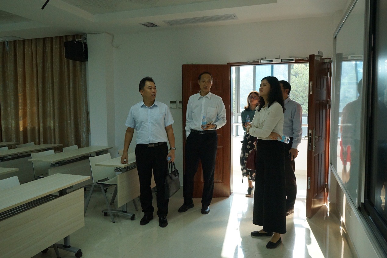 和校长介绍了肇庆学院近几年来在教师教育方面的工作开展情况和取得的成绩,并表示我校还将不断加大教师培养培训的力度,全面提升教师教育整体水平,着力培养未来卓越教师,为教育现代化继续作出贡献。肖起清院长向到访领导汇报了我校省级中小学教师发展中心的办学情况,并表示中心将在新的形势和政策下,继续响应深化教师教育改革的号召,把对一线中小学教师的培训工作落到实处,办出水平、办出特色。期间,双方还就我校教育硕士点建设有关工作开展交流。随后,和校长和肖院长等陪同客人参观了教师发展中心多个功能室,详细介绍了主要功能室的建设和使用情况。
