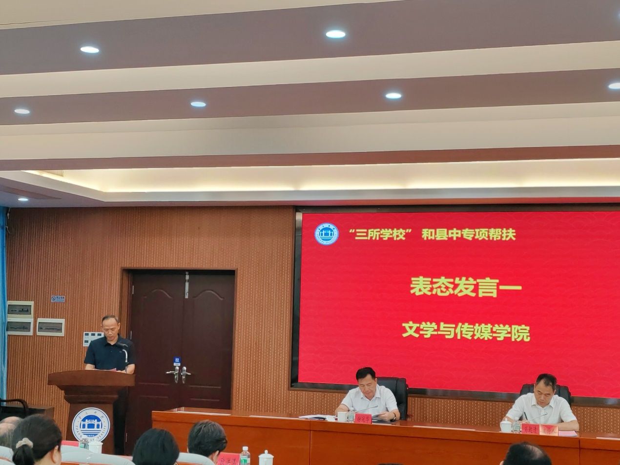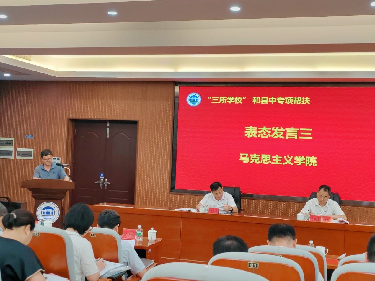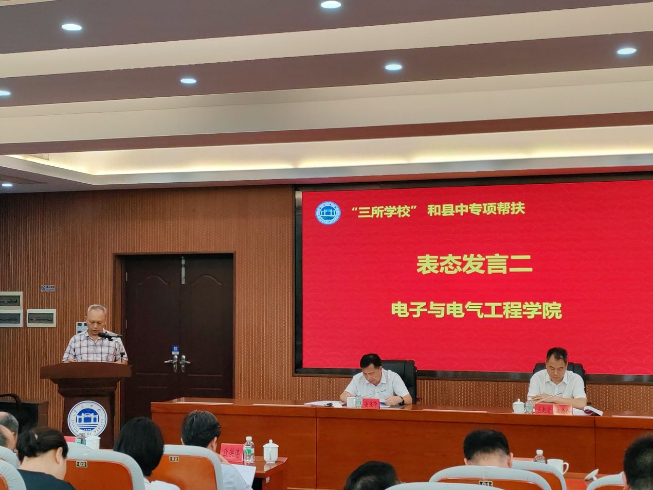肖起清首先做专项工作推进说明,他详细介绍了“三所学校”和县中专项帮扶工作的由来、重要性、前期工作开展和接下要推进的事项,包括协议签约、分解指标、报送工作组名单、帮扶经费分配等内容。其次,文学与传媒学院杨红军院长、电子与电气工程学院陈庆华院长、马克思主义学院曹和修院长分别作表态发言,表达了各自学院对完成帮扶任务的坚定决心和全力支持参与。
