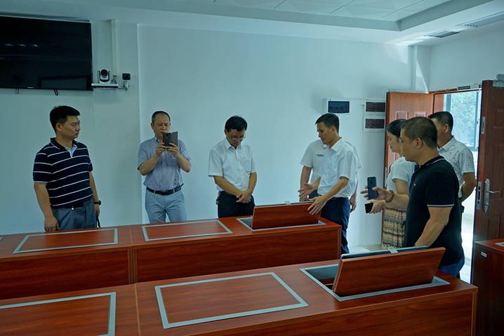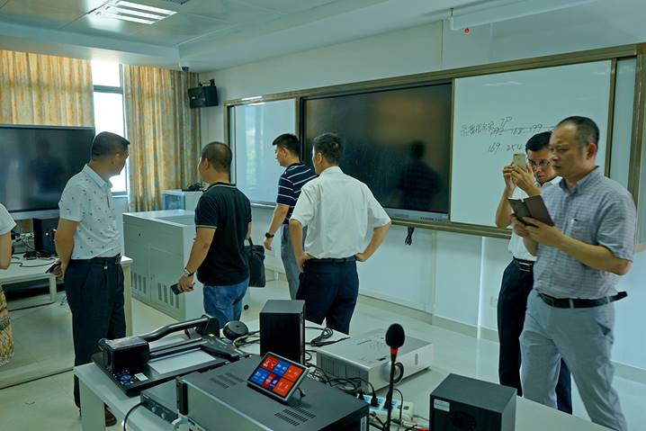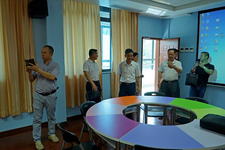 2017年6月29日下午,汕头市潮南区教育局领导一行六人来到肇庆学院省级中小学教师发展中心,在我中心培训部肖晓玛主任、黄燕芬老师、王子瑫老师的陪同下,参观了书画训练室、普通话测试室、远程教学交互中心、教学新媒体实训室、教学设计与教学反思室、智慧教室、团体辅导室、教师形象设计室、微课制作室等各个功能室。客人们对我中心的整体设计及先进硬件设备给予了充分肯定和赞扬。