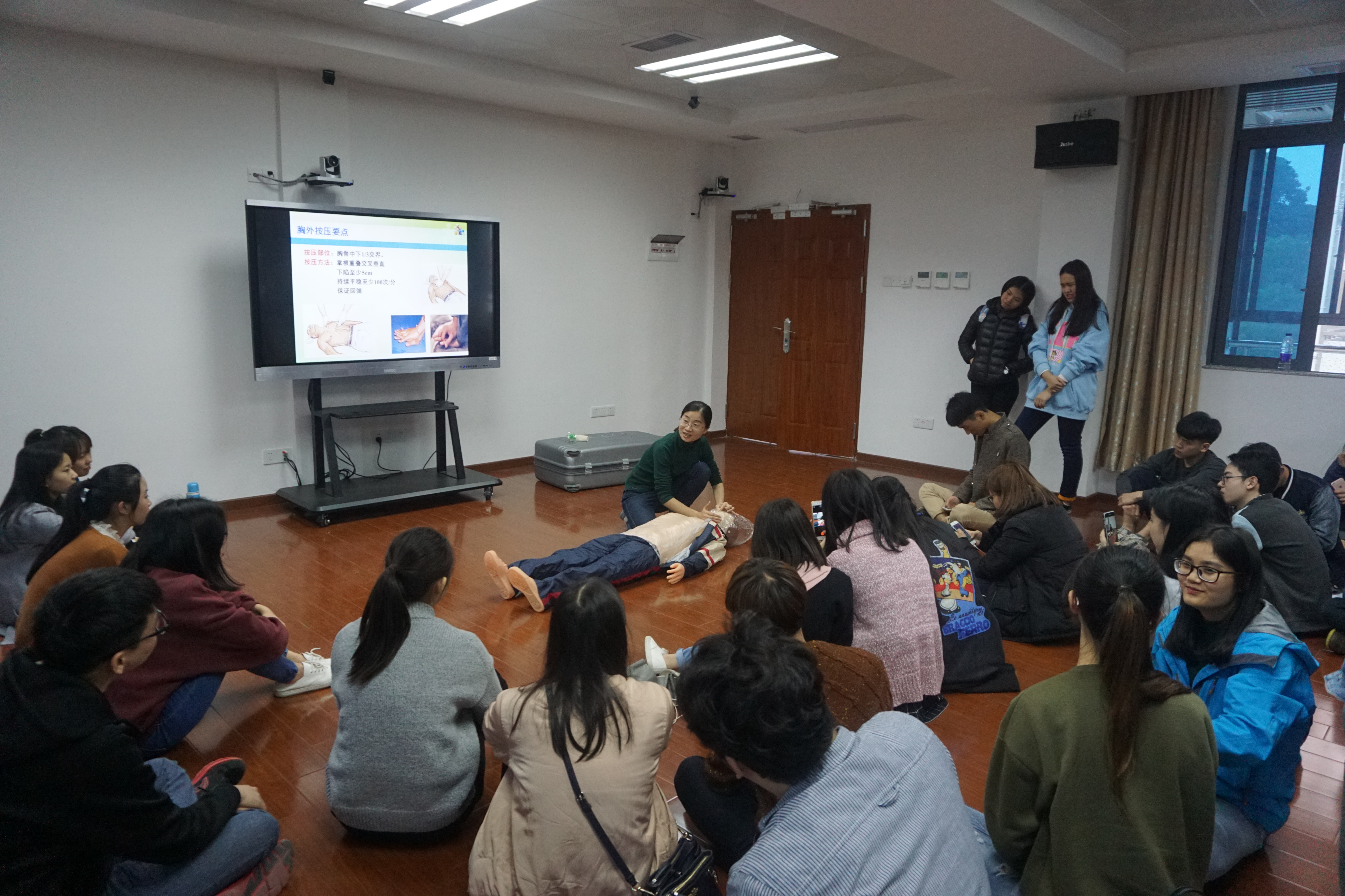 黄思敏老师的急救与心肺复苏课。如何处理在教学中发生的意外事故,从出血的急救、休克、中暑、溺水、心肺复苏等急救的方法进行讲解。