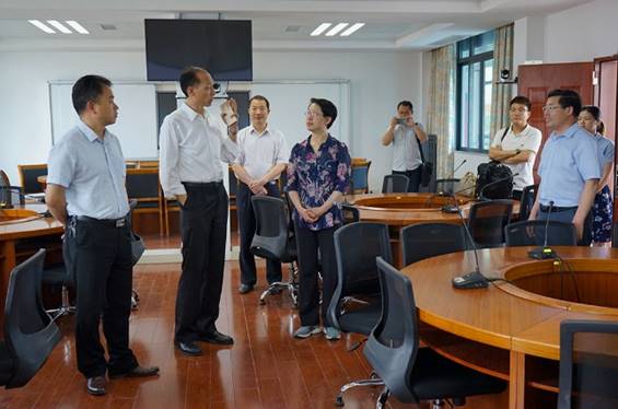 肖起清院长向到访领导汇报了我校省级中小学教师发展中心的办学情况,并表示中心将在新的形势和政策下,继续响应深化教师教育改革的号召,把对一线中小学教师的培训工作落到实处,办出水平、办出特色。期间,双方还就中小学教师培训有关工作开展交流。随后,和校长、彭局长、朱主任和肖院长等陪同客人参观了教师发展中心多个功能室,详细介绍了主要功能室的建设和使用情况。
