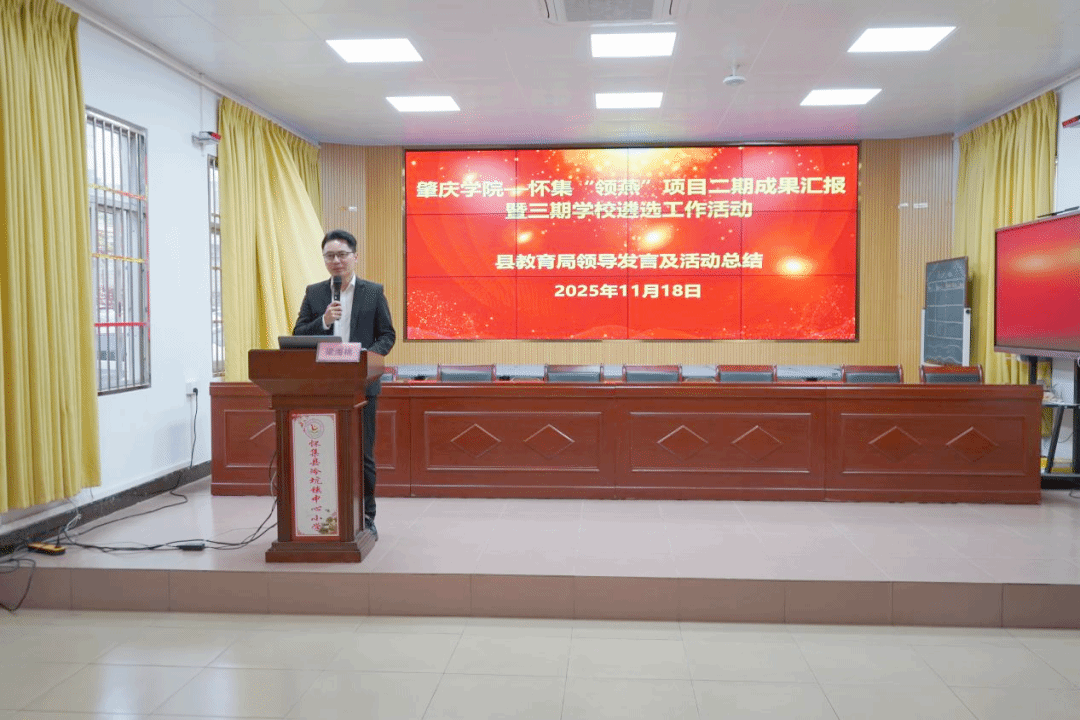 “领燕”项目作为肇庆学院与地方协同培育基础教育骨干力量、孵化乡村优质学校的重要平台,是我校与肇庆市“百千万工程”指挥部全面战略合作的头号项目,更是助力肇庆学院“三所学校”与及县中质量提升的关键举措。为系统总结项目二期建设成效,科学遴选三期实验学校,持续深化项目对县域教育的辐射赋能作用,2025年11月17-18日,肇庆学院联合肇庆市教师发展中心组织专家团队,赴怀集县开展专项指导与调研活动。怀集县教育局、县教师发展中心相关领导及教研员,项目一期、二期实验学校负责人、种子教师,以及三期申报学校的百余名代表齐聚一堂,共话成果、共商路径,为乡村教育振兴注入新动能。