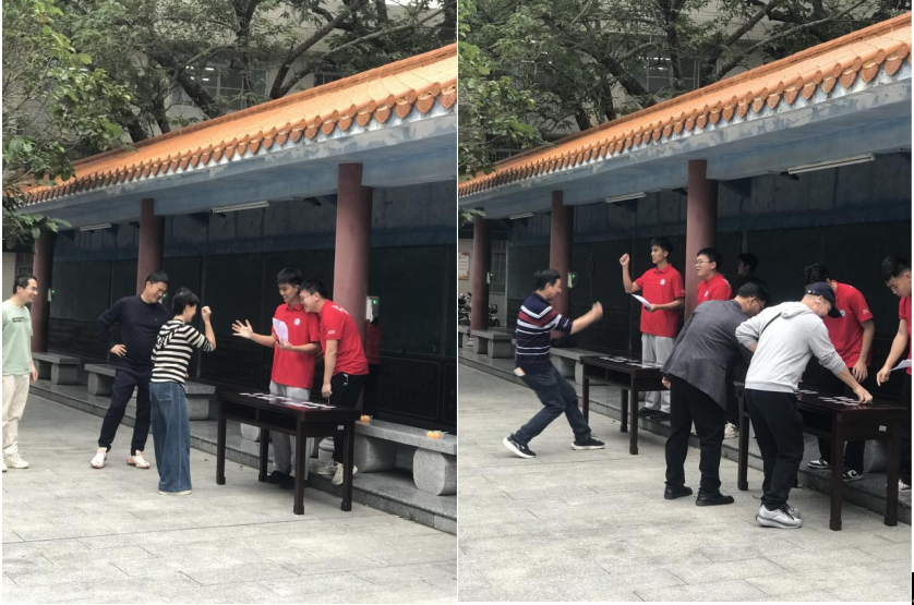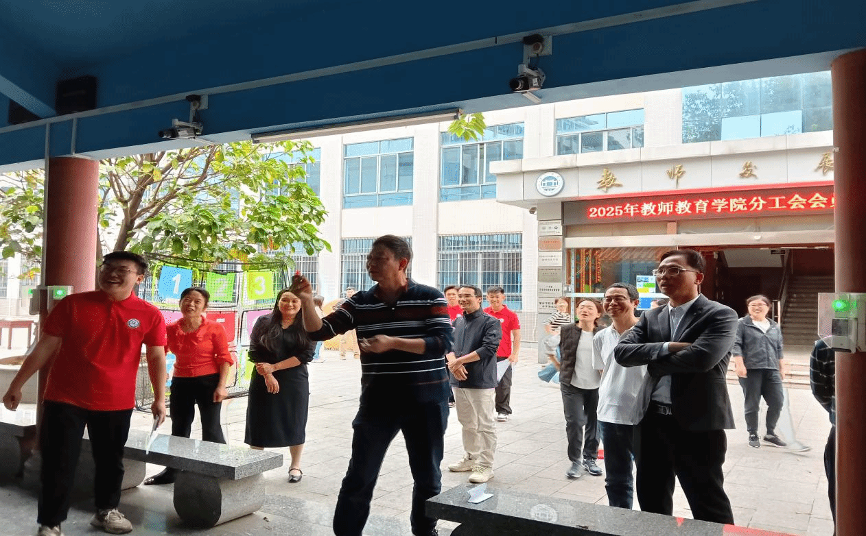 赛场上,既有个人项目中精准投掷的专注身影,也有团体项目中携手共进的协作场景。个人赛中,飞盘九宫格与飞镖竞技兼具技巧与趣味,选手们凝神聚力、精准投掷,每一次命中都引来现场阵阵喝彩。团体项目里“运球”接力赛与“剪刀石头布”翻卡牌接力赛则考验着团队的默契与协作,队员们分工协作、默契配合,在夹乒乓球时的谨慎、翻卡牌时的沉着,尽显教职工团结拼搏的风貌。赛场内外,加油声与欢笑声交织,大家在轻松比拼中舒缓压力,在携手闯关时深化情谊。