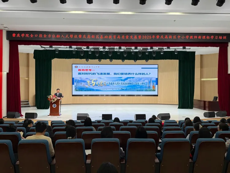 为推动新课标理念在课堂教学落地生根,提升教师教学能力,赋能区域基础教育高质量发展,11月13日,“肇庆学院全口径全方位融入式帮扶肇庆高新区基础教育高质量发展暨2025年肇庆高新区中小学教师新课标学习培训(初中专场)”在肇庆高新区育才学校成功举办,150余名教师齐聚参训。
