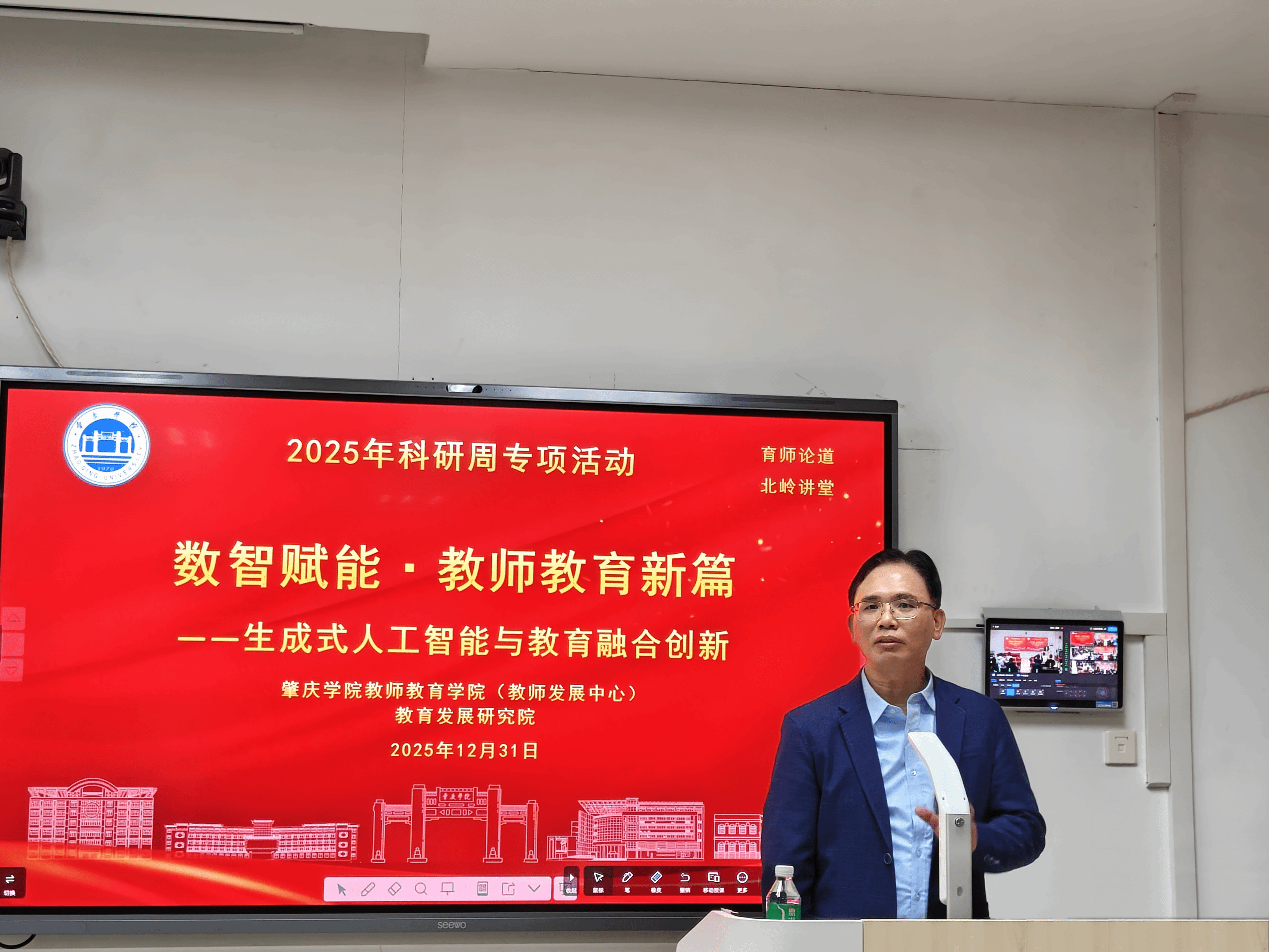 为积极响应教育数字化转型国家战略,探索人工智能在教师教育领域的创新应用路径,2025年12月31日,肇庆学院williamhill威廉希尔官网(教师发展中心)/教育发展研究院在教师发展中心大楼106室成功举办科研周专项活动。本次活动以“数智赋能教师教育”为核心主题,精心设置学术讲座与主题沙龙两大环节,学院党总支书记植可焕,学院党政领导班子、全体教职工,以及未来卓越教师砚园12班学子齐聚现场,共话数智时代教师教育发展新方向。活动由副院长(副主任)薄艳玲主持。