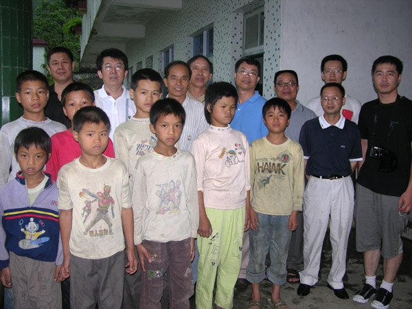 该小学目前有学生8名,分为二、五、六年级三个班。校友莫纯通老师一个人长年累月在大山深处撑起了这间学校,学校校长、班主任、老师都是他。莫老师的家虽不在怀集,却一直扎根于工作条件和生活环境都非常艰苦的怀集山区,传道授业,教书育人,他的真诚工作态度和无私奉献精神,使我们每一个党员都深受感动,受益匪浅。随后,我们给小学生送上了书包、文具、故事书等学习用品,还给莫老师送上慰问金。