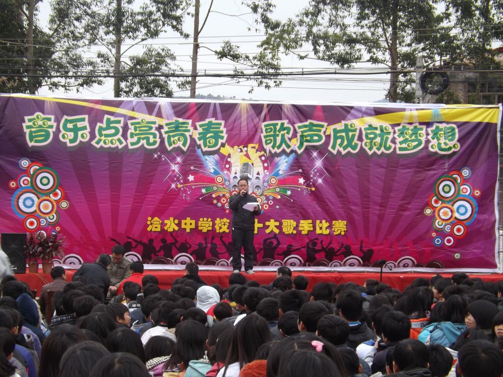 2013年1月6日讯,洽水中学为了“迎元旦,送温暖”,举行的主题为“音乐唱响青春、歌声成就梦想”校园十大歌手比赛在一片激情、欢呼声中圆满落下帷幕。