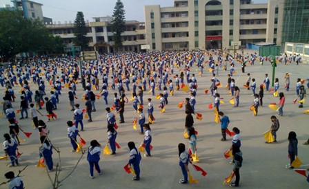 这个大课间操开展得很顺利,很成功,不仅受到了教育局领导的大加称赞,而且受到了其他学校来参观的老师的称赞。