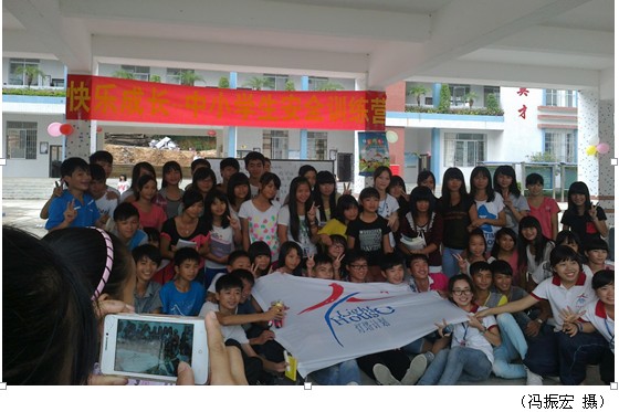 下午2:30,学生集中多媒体教室,在梁家孝校长接受由中国体彩捐赠的一批物资并致辞后,正式开始上课。课堂上,义工啊飞哥哥生动地讲解各种自救知识,如流鼻血、抽筋、中暑、烫烧伤、溺水等等,学生们认真听讲,并踊跃回答,课堂气氛活跃。随后,灯塔义工团队组织学生到操场进行消防演练,在讲述灭火器的正确使用方法和火灾逃生方法后,让学生们尝试用灭火器扑灭火苗。