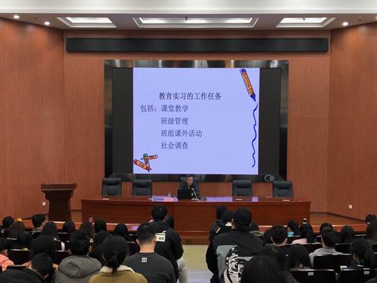 图 1 williamhill威廉希尔官网张晓峰老师为顶岗实习生们进行《顶岗实习工作(任务)》培训