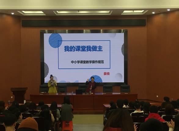 来自珠海市九洲中学的正高级教师,姜楠校长。先后获得广东省特级教师、广东省教师工作室主持人、珠海市名师工作室主持人、珠海市名教师、珠海市首届青年骨干教师、珠海市先进教师等称号。她的教学风格灵动、睿智、高效。多年来有《运用“学习报告表”优化初中语文阅读教学评价的研究》等5项省市级重点课题立项,结题。此次莅临我校给实习生们带来了《中小学课堂教学操作规范》的讲座。