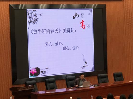 图 9 广东省怀集县莲都镇中学刘武平校长为顶岗实习生们开展《教师与学校》讲座