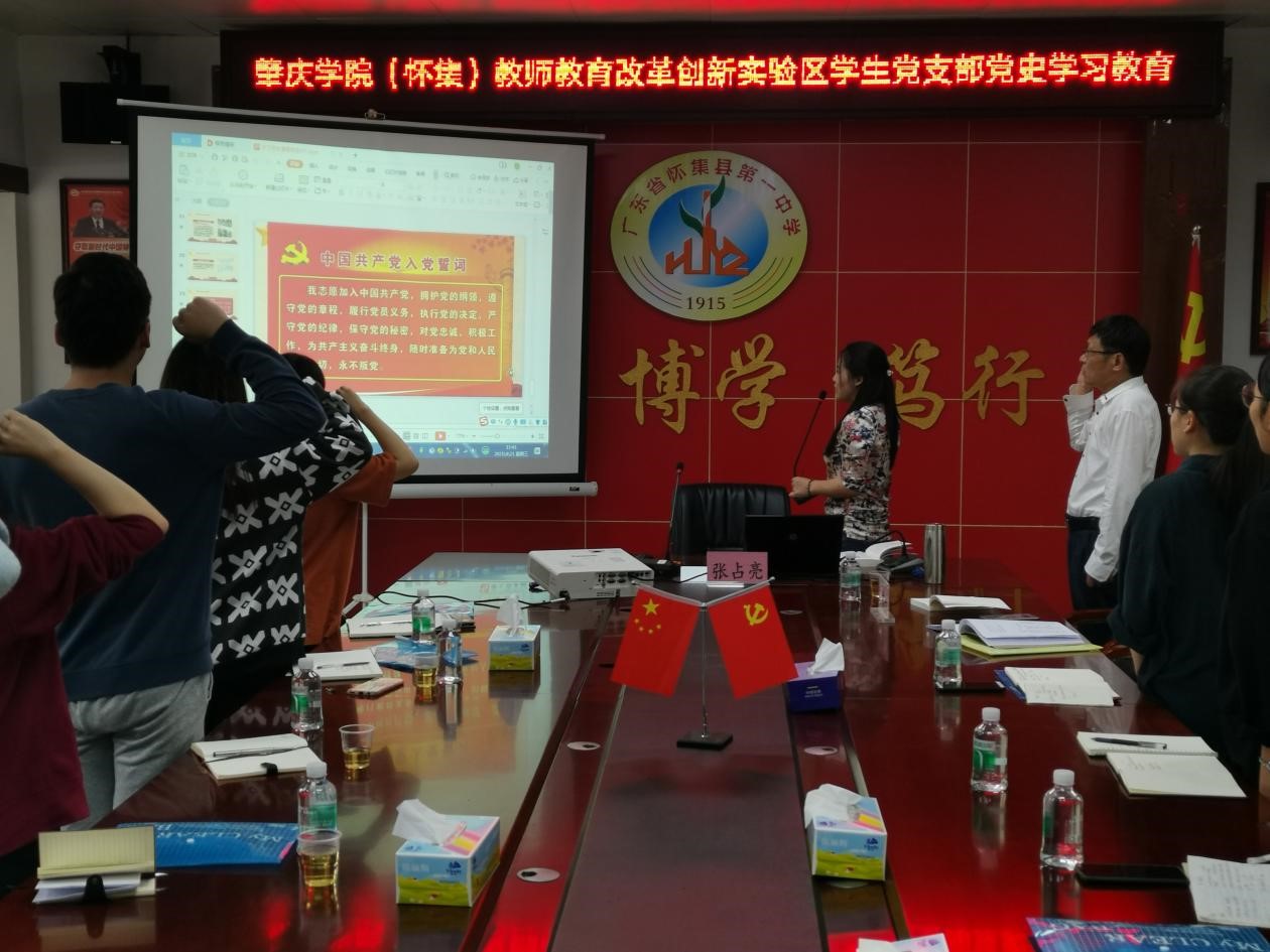 4月21日,教师教育创新实验区横向党支部前往怀集县第一中学开展党史学习教育,学院党总支书记张占亮、怀集教师教育创新实验区横向党支部书记王君丹参加了此次学习。