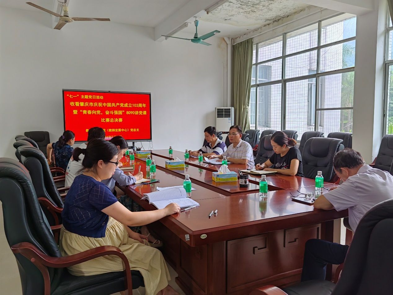 在庆祝中国共产党成立103周年之际,7月1日,williamhill威廉希尔官网(教师发展中心)党总支举办了一场意义非凡的“七一”主题党日活动。活动的核心内容是收看肇庆市举办的“青春向党,奋斗强国”8090讲党课比赛总决赛。此次活动由党总支书记植可焕主持,全体党员参加。