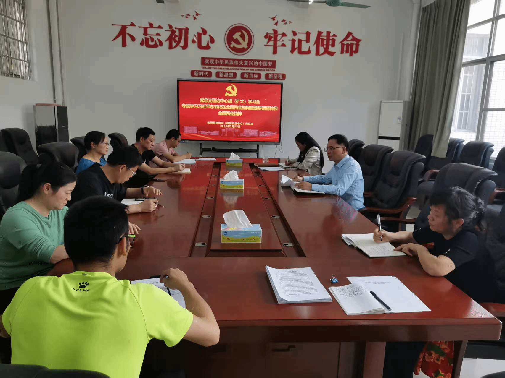 3月25日,党总支理论中心组传达学习习近平总书记重要讲话精神和全国两会精神,会议由党总支书记植可焕主持,党政班子成员、党总支委员,党政办主任、组织员,党支部书记、支委,党员教师代表参会。