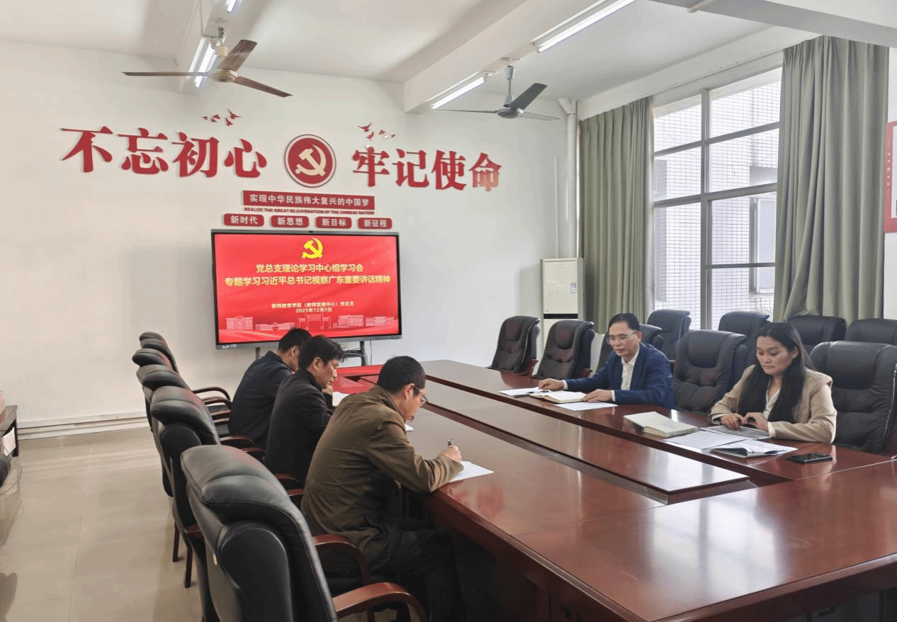 12月5日,党总支理论学习中心组举行专题学习会,深入学习领会习近平总书记视察广东重要讲话精神,研究部署贯彻落实举措。学习会由党总支书记植可焕主持,理论学习中心组成员参加学习。