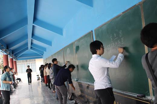 【本院讯】为强化教师职业技能,练好教学基本功,帮助教师更好地胜任教学工作,我校为2016-2017年新进青年教师举办粉笔字比赛。10月17日下午,来自全校19个院系的新进青年教师参加了本次比赛,比赛在教师发展中心板书长廊进行。