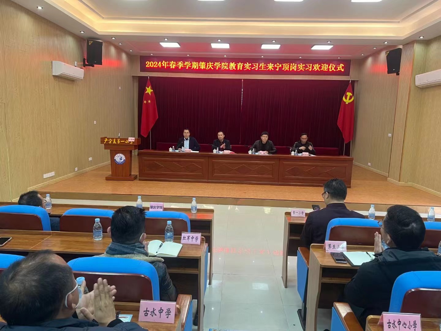 仪式结束后,由实习指导老师跟车带队,分别将学生安全送达实习学校,顺利完成交接工作。实习单位为学生举办了欢迎仪式,并为每位实习生安排了指导教师,同学们在领导和老师们的祝福和叮咛中开启新征程。