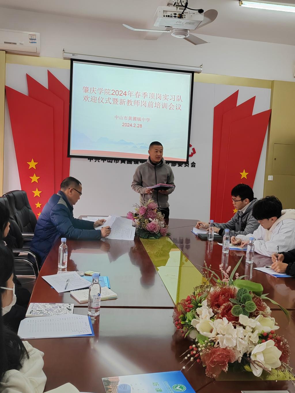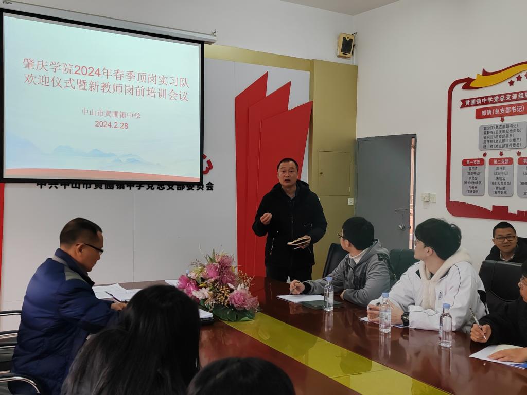 新年伊始黄圃镇中学同“新”同行,聚力奋进。2024年春季学期刚刚开始,黄圃镇中学就迎来了多名新教师,新教师的到来也为黄圃镇中学注入了新鲜血液。为帮助新教师尽快适应环境,助力新教师专业成长,肇庆学院2024年春季顶岗实习队欢迎仪式暨新教师岗前培训会议于2024年2月28日下午在黄圃镇中学行政会议室顺利召开。