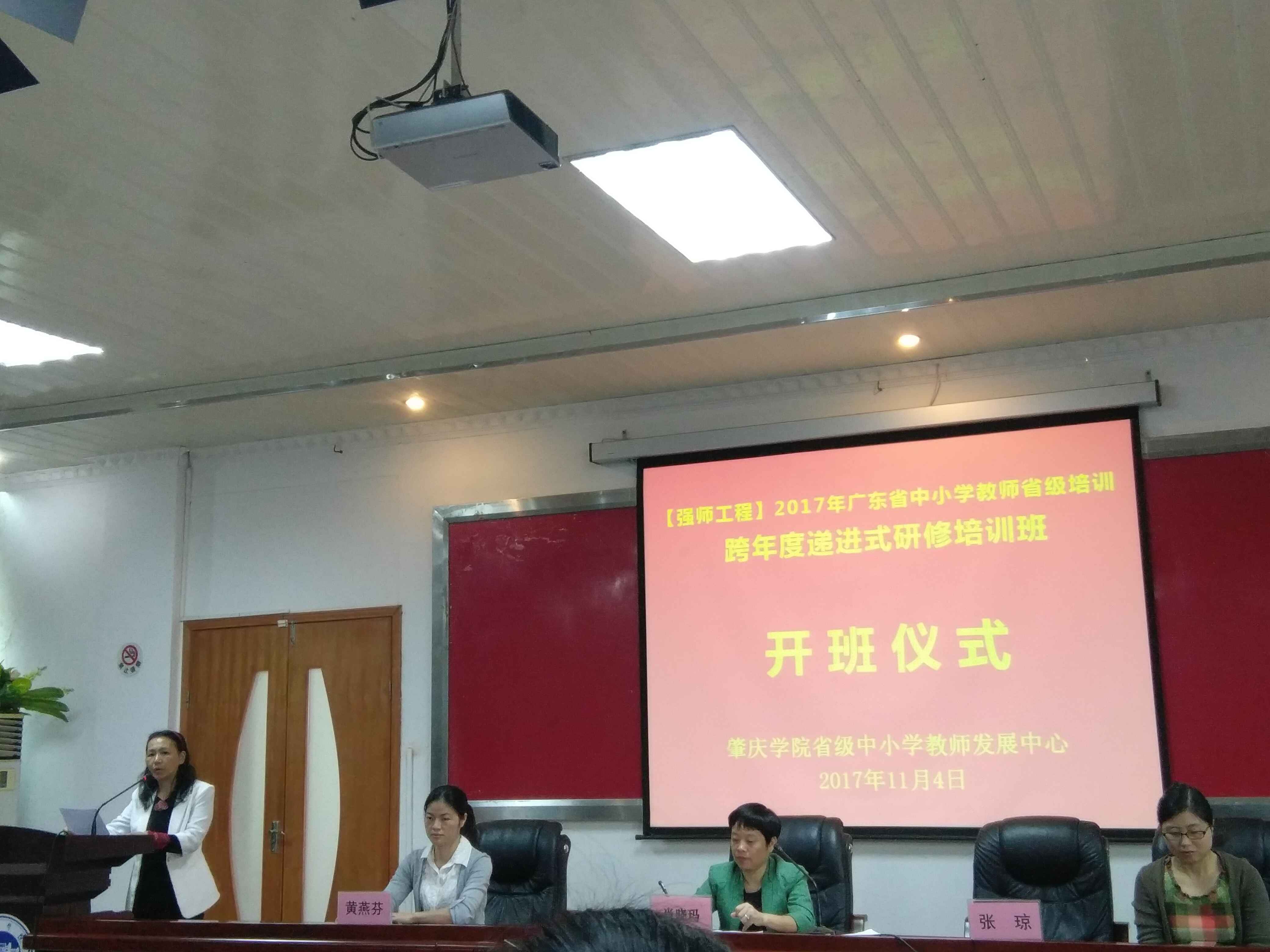 11月4日上午,2017年广东省“强师工程”跨年度递进式培训项目—乡村教师置换培训(肇庆学院,第二批次)开班仪式在肇庆学院行政楼第二会议室隆重举行。肇庆学院教师专业能力发展中心、教师教学发展中心副主任肖晓玛博士,肇庆学院williamhill威廉希尔官网张琼博士、黄燕芬老师、王子瑫老师,以及来自肇庆、云浮、茂名、中山等多个地市共140名乡村中小学骨干教师共同出席开班仪式。开班仪式由黄燕芬老师主持。