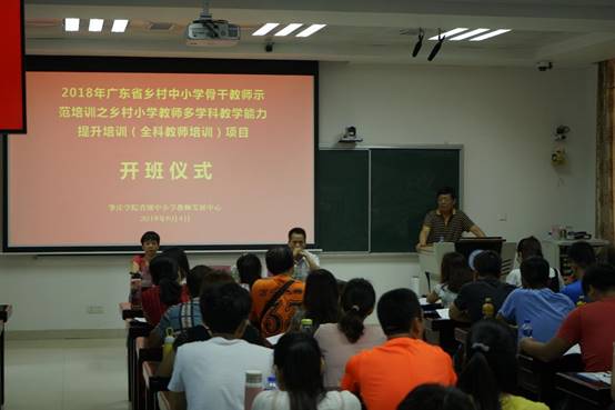 6月4日上午,2018年广东省“强师工程”乡村小学教师多学科教学能力提升(全科教师)培训班在肇庆学院省级中小学教师发展中心隆重举行。肇庆学院williamhill威廉希尔官网党总支书记张占亮、肇庆学院williamhill威廉希尔官网副院长曾毅,肇庆学院省级中小学教师发展中心副主任肖晓玛,以及来自汕头、韶关、河源、梅州、惠州、汕尾、江门、阳江、湛江、茂名、潮州、揭阳、云浮、肇庆等10余个地区共100名学员,共同出席了开班仪式。