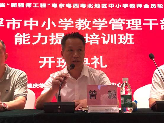 曾副院长对参加此次培训的学员表示热烈的欢迎。他表示,肇庆学院高度重视中小学教师专业发展,并为此做了很多工作。此次培训中有很多可以学习、借鉴的地方,希望大家静下心来,踏实学习。借助此次培训强大的专家队伍有针对性的课程设置,勤学力行。同时要增强同行之间的交流,提升自身专业能力水平,助力云浮市基础教育高质量发展。
