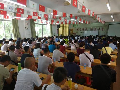 9月13日下午,学员们赴肇庆中学初中部考察交流。肇庆中学姚立宏主任热情接待了学员们。首先,姚主任带领学员们参观了校园,领略了老校区浓厚的校园文化。随后,学员们在学校礼堂听取了姚主任关于“广东省肇庆中学初中部教学教研工作”的讲座,向学员们介绍了学校的发展历史与概况,并通过一个个详实生动的教改创新案例与学员们分享了自身多年的教学经验,学员们纷纷表示受到了很大启发。讲座尾声,学员们就关心的教学和教科研问题向姚老师提问,现场气氛热烈。