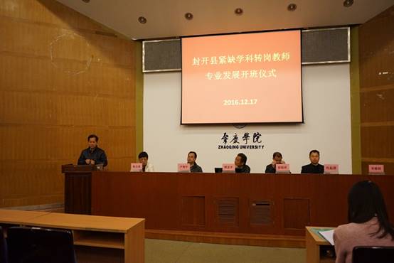 12月17日上午,封开县紧缺学科转岗教师专业发展培训班开班仪式在我校图书馆学术报告厅隆重举行。我校周苏平副校长、肇庆市教育局彭银祥局长、封开县委卢智宇常委、封开县教育局岑焕钊书记及肇庆学院williamhill威廉希尔官网肖起清院长、张占亮书记出席了开班仪式。
