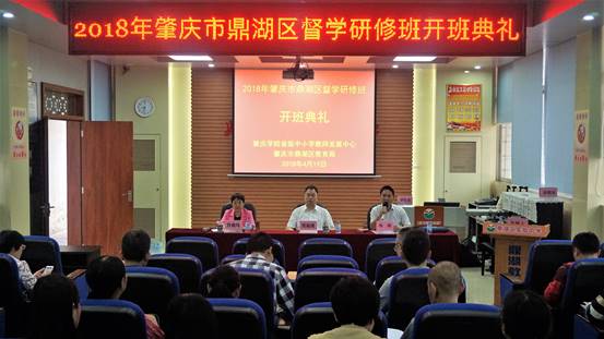 2018年4月19日上午,肇庆市鼎湖区督学研修班开班典礼在鼎湖区实验中学学术报告厅隆重举行。应邀出席开班典礼的领导有肇庆学院williamhill威廉希尔官网院长、肇庆学院省级中小学教师发展中心副主任肖起清教授、肇庆市鼎湖区教育局党组成员韦刚副局长、肇庆学院教师专业能力发展中心副主任肖晓玛博士。参加开班典礼的还有24位鼎湖区教育局干部和54位鼎湖区中小学、幼儿园校(园)长。开班典礼由肇庆学院省级中小学教师发展中心何其国老师主持。