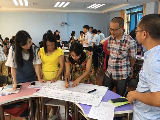 7月8日至12日,2017年广东省中小学教师省级研修培训——中小学教师培训团队专项研修培训班的培训学习已开展一半。这五天时间里,50名来自19个地市的小学语文骨干教师和教研员们通过专题讲座、案例研讨、小组探究、互动交流等多种形式的学习,深感课程编排精细、内容充实、层次丰富、收获良多。