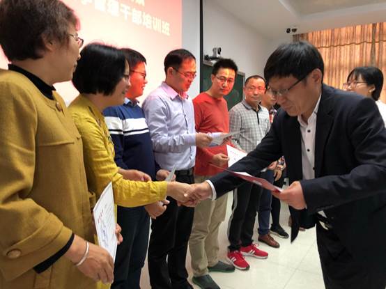 最后,由张占亮书记和肖晓玛副主任分别为本次培训班学员颁发肇庆学院省级中小学教师发展中心精心制作的结业证书。
