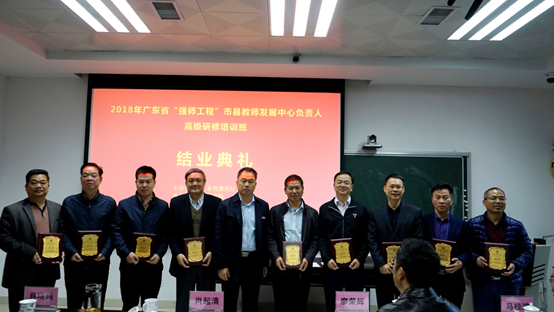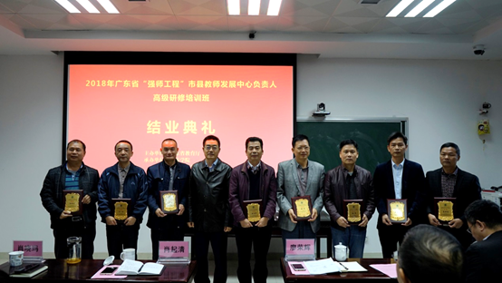 广东省教育厅继续教育指导中心廖荣辉主任给学员授纪念牌并合影