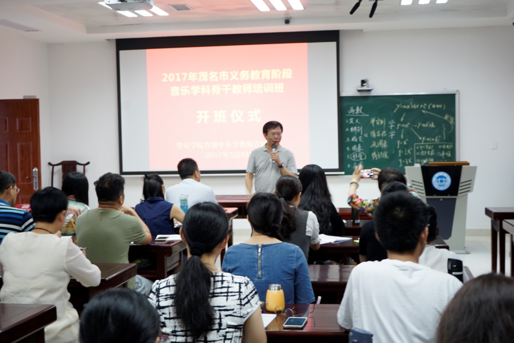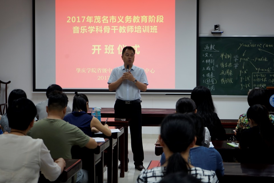 2017年5月8日,茂名市教育局直属义务教育学校音乐学科骨干教师培训班在肇庆学院省级中小学教师发展中心隆重开班。肇庆学院williamhill威廉希尔官网肖起清院长、茂名市教师继续教育中心黄日周主任等出席开班仪式。