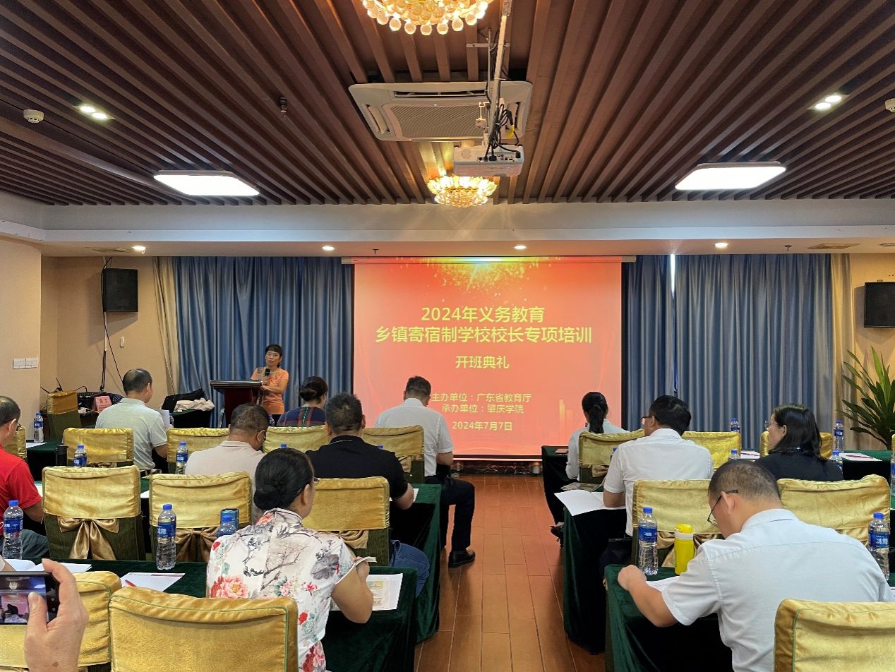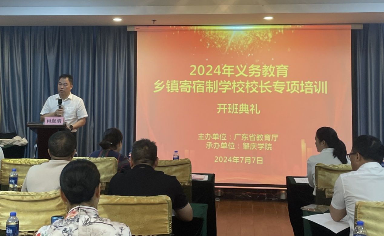 由广东省教育厅主办、肇庆学院省级中小学教师发展中心承办 的2024 年义务教育乡镇寄宿制学校校长专项培训项目第一期培训班于2024年7月7日上午在肇庆国际大酒店会议室开班。肇庆学院副校长肖起清,肇庆学院williamhill威廉希尔官网院长杨琰、副院长肖晓玛、班主任李小定和鲍染,广东省各地义务教育乡镇寄宿制学校校长91人等参加了开班典礼。